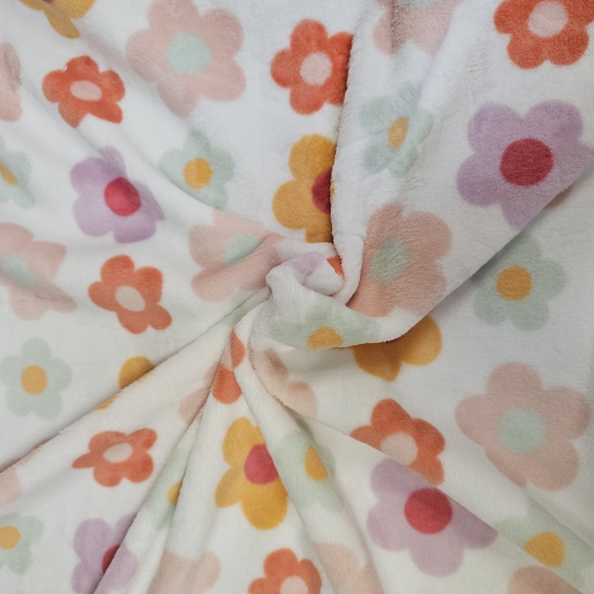 TISSUS MAILLE DOUDOU FLEURS MULTICOLORES LAIZE 150CM