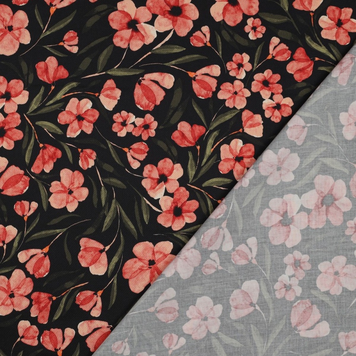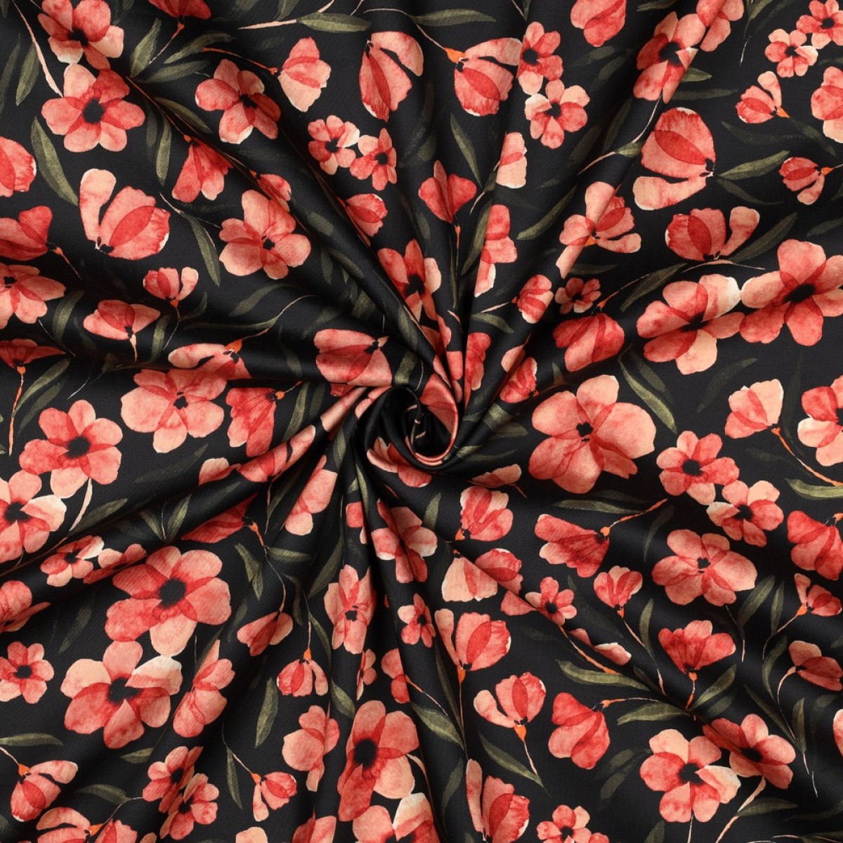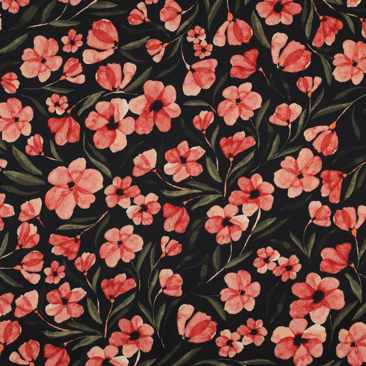 TISSUS COTON IMPRIME FLEURS NOIR / ROUGE