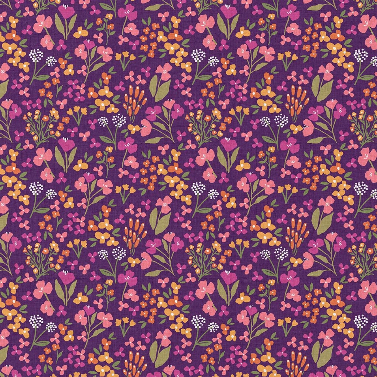 TISSUS COTON IMPRIME FLEURS VIOLET JAUNE LAIZE 150CM