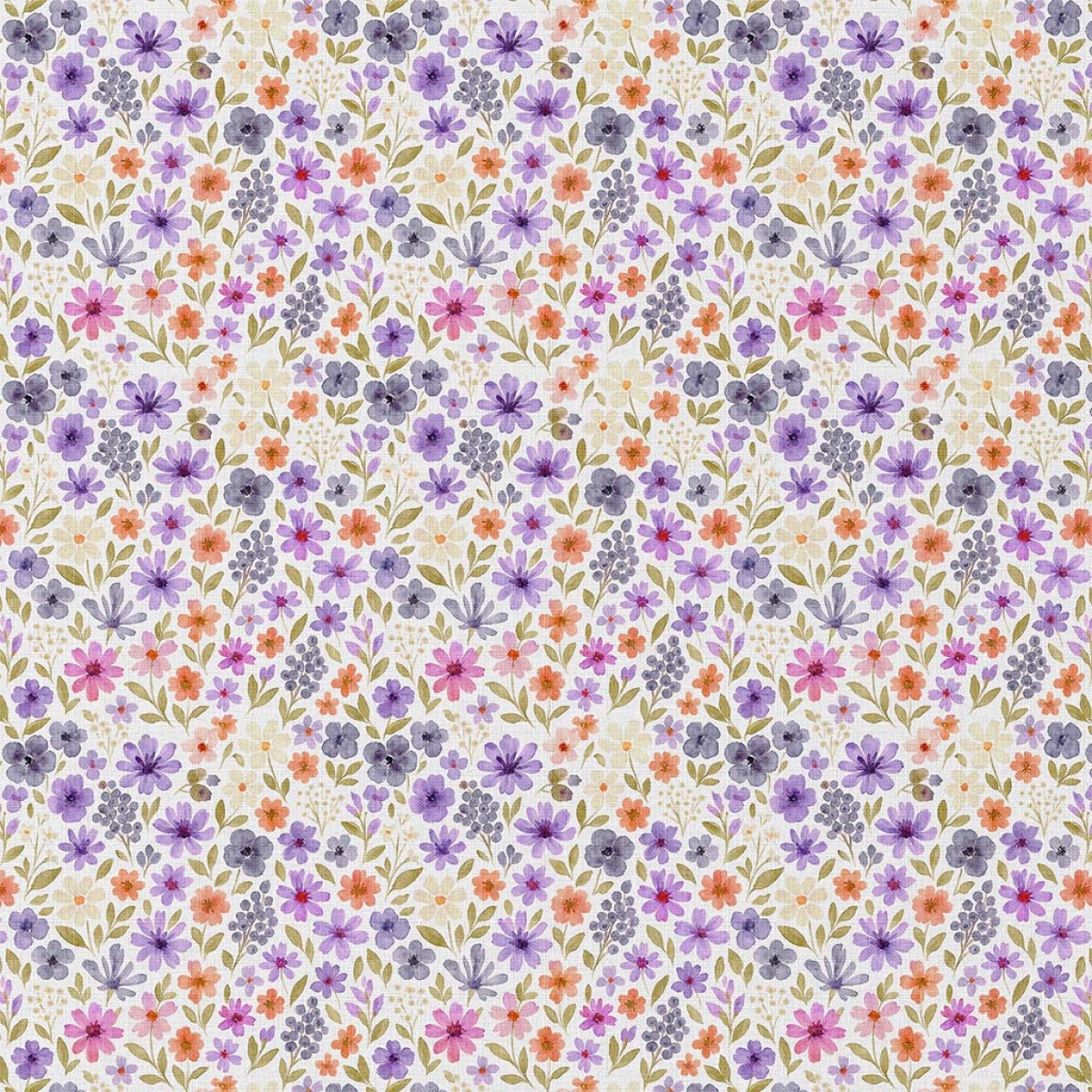 TISSUS COTON IMPRIME ROZEN BLANC VIOLET LAIZE 150CM