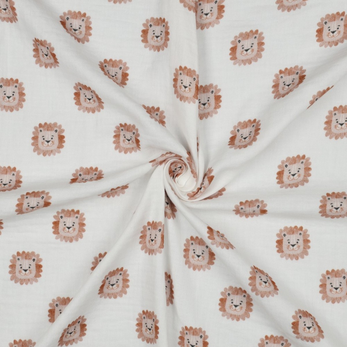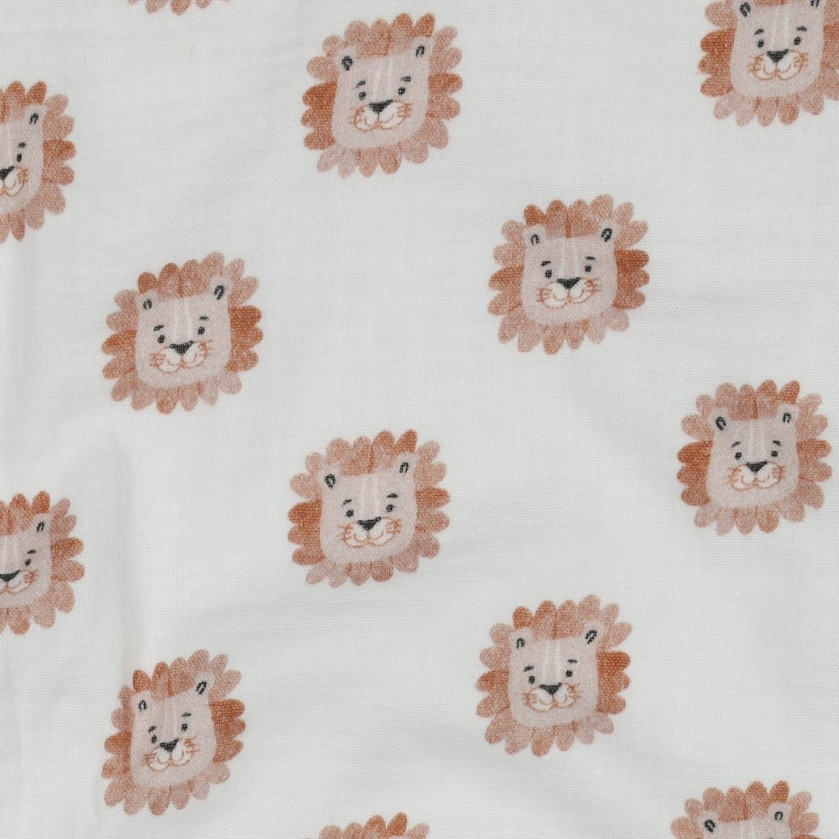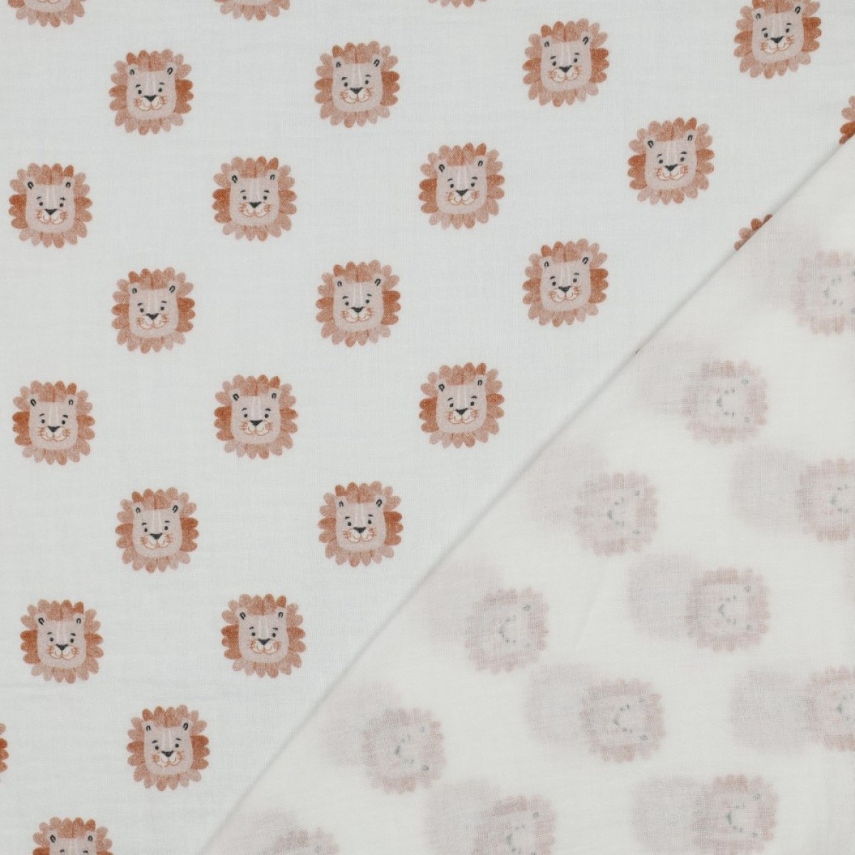 🌿 Double gaze de coton lions blanc – tissu léger, doux et imprimé 🦁