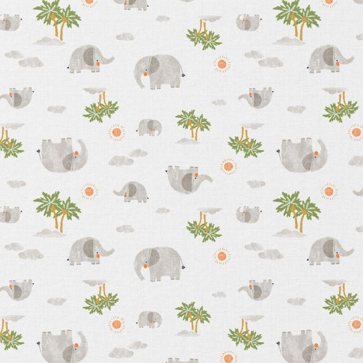 TISSUS COTON IMPRIME PACHY Blanc / Vert ROSE LAIZE 150CM