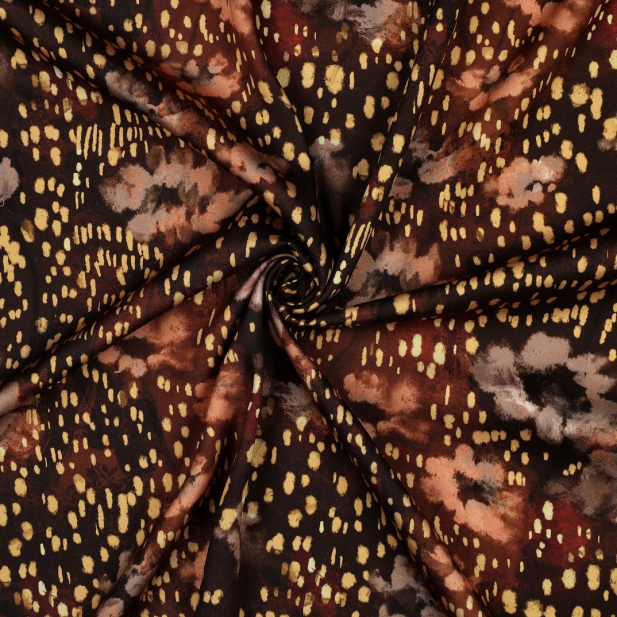 🤎 Viscose Satin Digital Abstract Brun – Fluide, brillant et ultra tendance