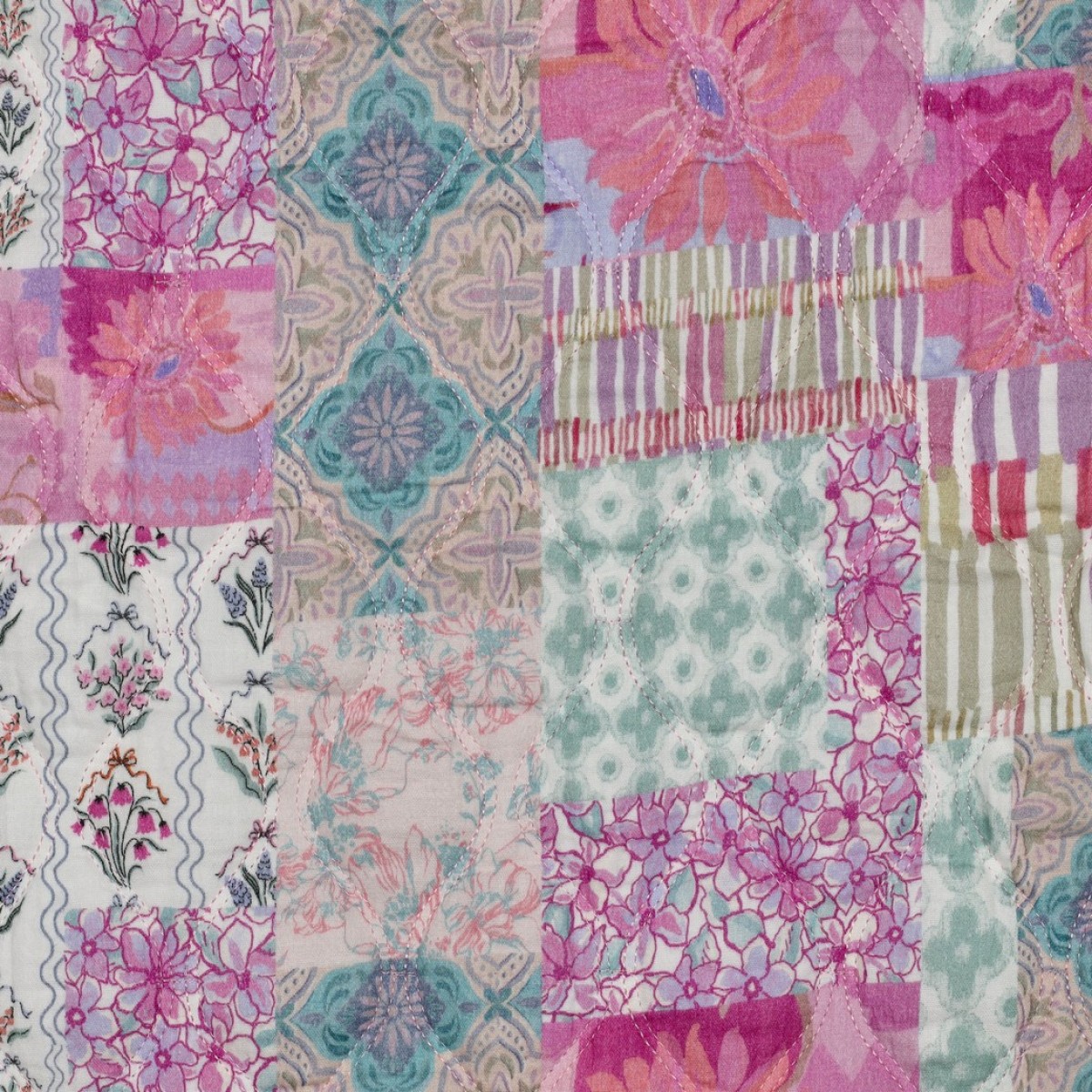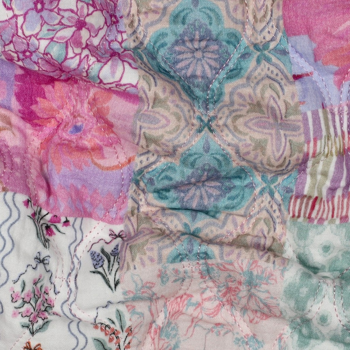 🌸 Double Gaze de Coton Matelassée Fleurs Rose Clair – Douceur, confort et effet cocooning